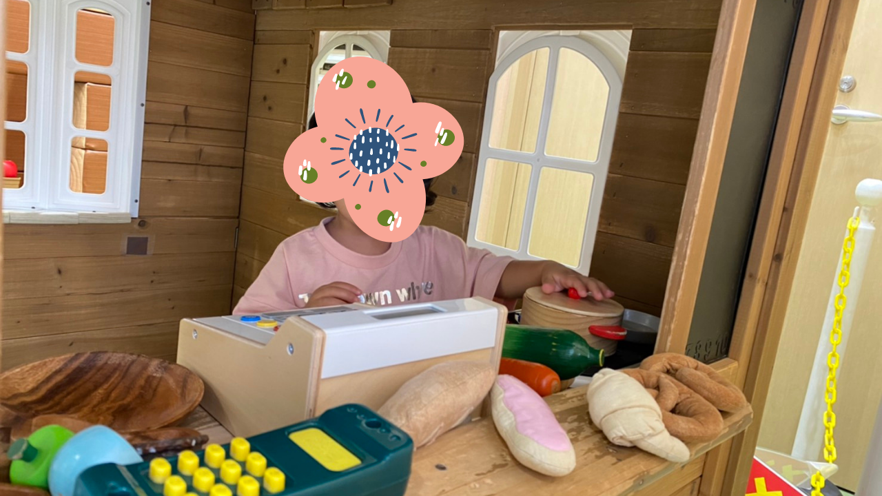 おままごとやお店やさんごっこができるお家やおもちゃがいっぱい置いてありました。